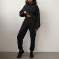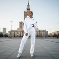 Bluza o klasycznym kroju, wyposażona w kaptur i praktyczną kieszeń typu „kangurka” (lub wersja bez kaptura – zależnie od modelu), zapewnia wygodę i ochronę przed zimnym wiatrem. Spodnie z elastycznym pasem, sznurkiem do regulacji i kieszeniami bocznymi gwarantują idealne dopasowanie oraz swobodę ruchów.