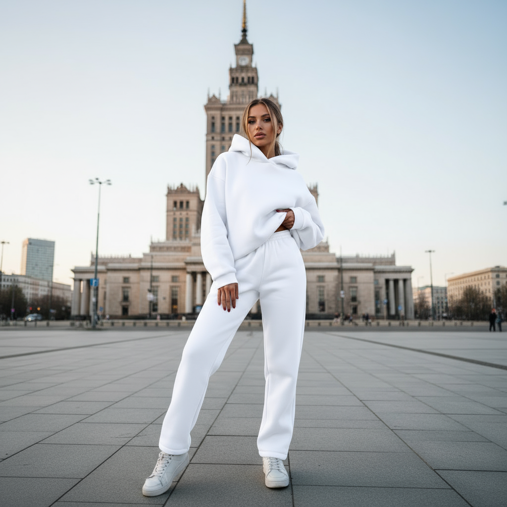 Ten ciepły komplet dresowy to idealny wybór na jesienne i zimowe dni, kiedy liczy się zarówno komfort, jak i modny wygląd. Zestaw wykonany z mięsistej, ocieplanej dzianiny z miękkim meszkiem od wewnątrz gwarantuje przyjemne otulenie i doskonałą izolację przed chłodem.